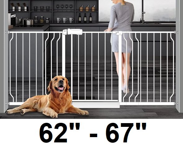 Fairybaby wide pressure mounted metal walk through safety gate - 62"-67" - white (model: w046)