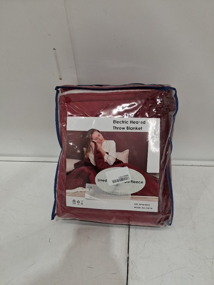 reversible sherpa fleece/microplush electric heated throw blanket - 50"X60" - WINE RED/WHITE (model: NA-T1811B)