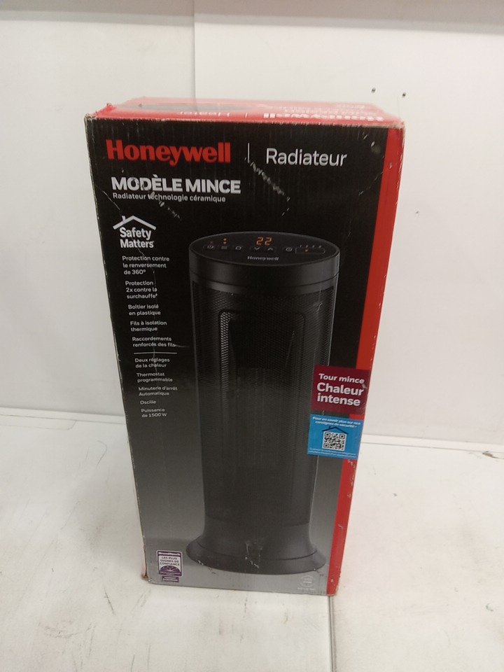 HONEYWELL SLIM CERAMIC TOWER SPACE HEATER with two heat settings and Overheat & Tip-Over protection - 23"- black (MODEL: HCE317BC)