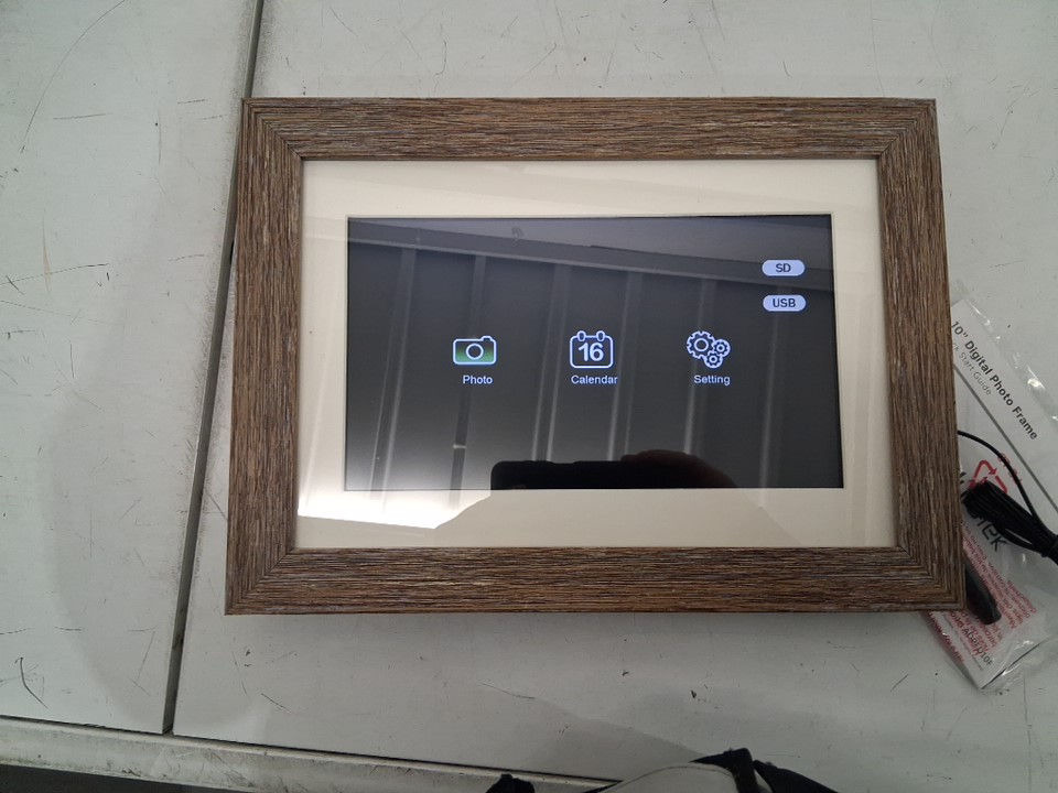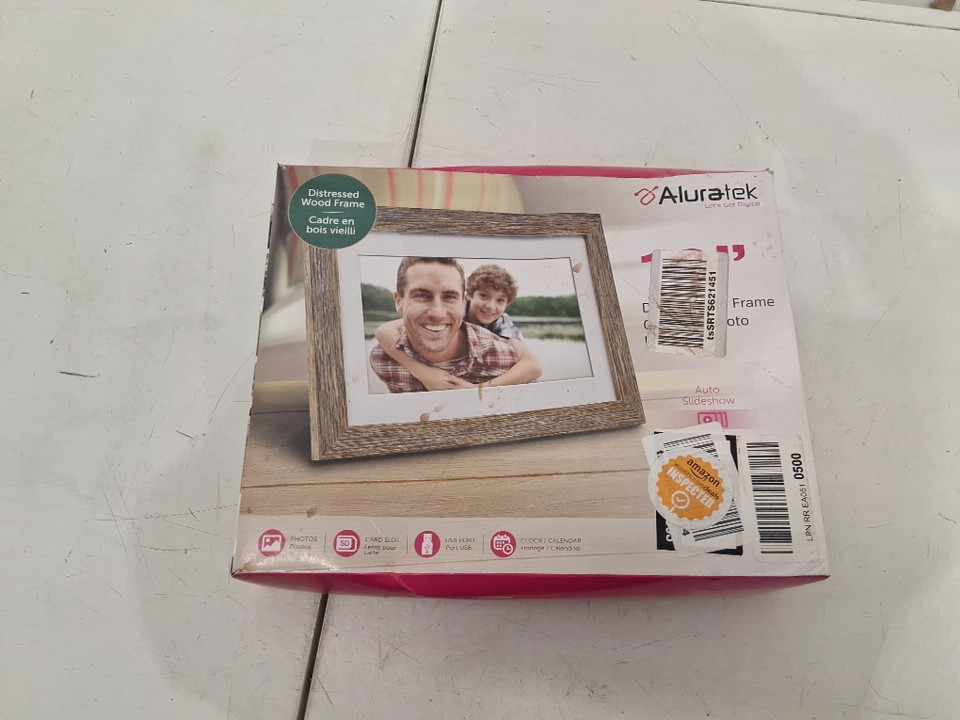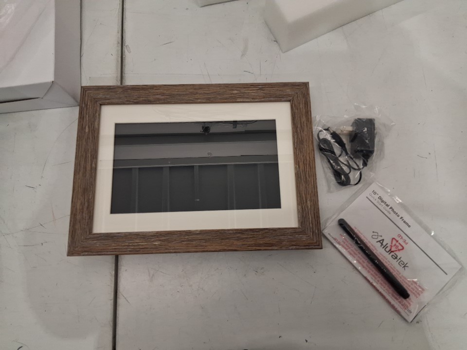 Aluratek TABLETOP/WALL-MOUNT DIGITAL PHOTO FRAME WITH AUTO SLIDESHOW - 10" - 1024 X 600, 16: 9 ASPECT RATIO - DISTRESSED WOOD (MODEL: ADPFD10F)