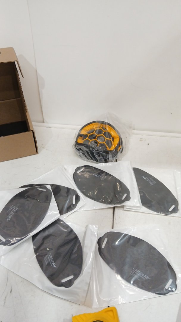 7pc forged air Respirator mask with replacement fabric and built in visor - osfm - black/yellow