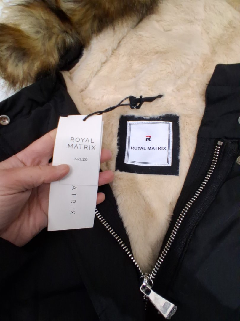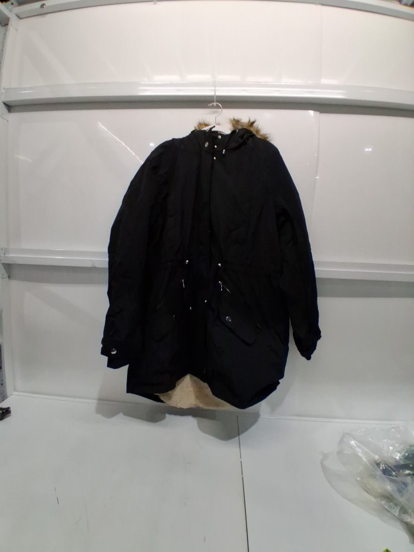 WOMEN'S ROYAL MATRIX MID-LENGTH WINTER PARKA JACKET WITH DETACHABLE FAUX FUR HOOD - SIZE 20- BLACK
