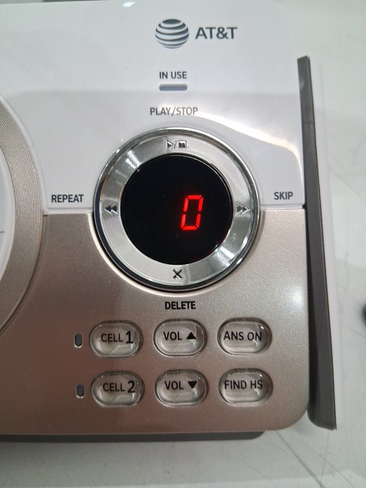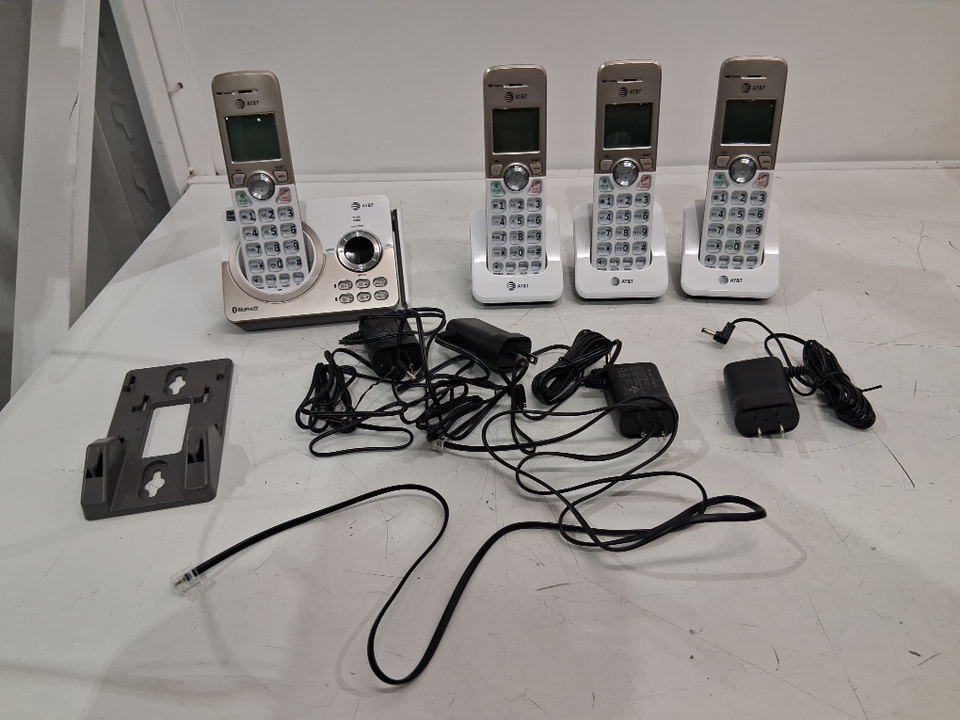 AT&T 4-Handset Cordless Phone for Home with Connect to Cell, Call Blocking, 1.8" Backlit Screen, Big Buttons and intercom - white/champagne (model: DL72419)