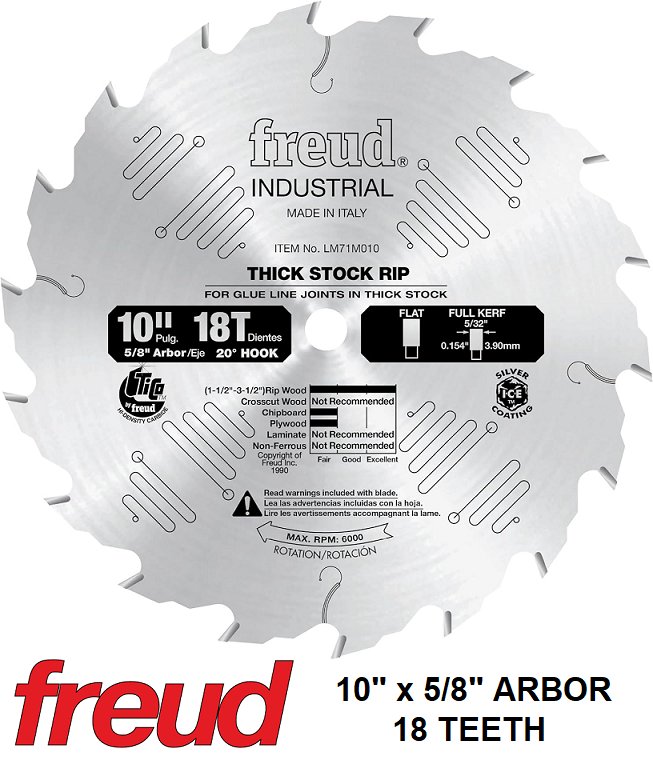 Freud 10" 18 Tooth FTG Thick Stock High Speed Ripping Saw Blade with 5/8" Arbor - (Model: LM71M010)