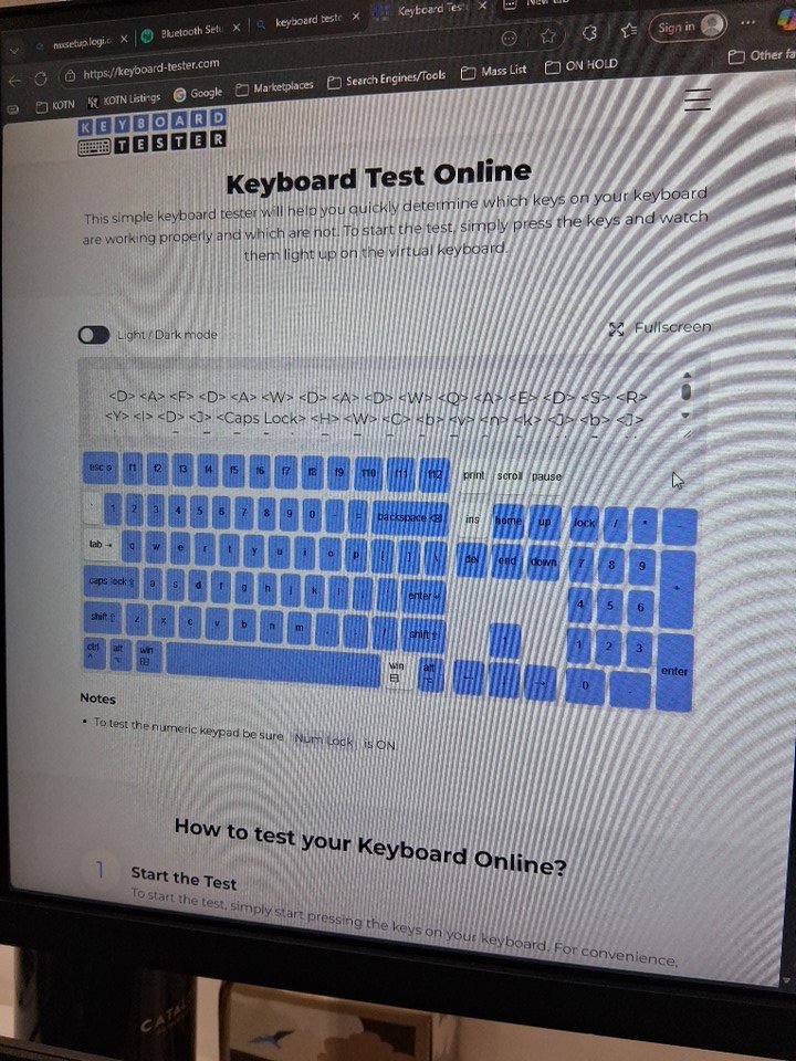 Tested for power/function, missing mouse dongle for Logitech connection, Bluetooth works for both devices.
