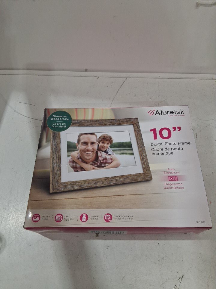 Aluratek TABLETOP/WALL-MOUNT DIGITAL PHOTO FRAME WITH AUTO SLIDESHOW - 10" - 1024 X 600, 16: 9 ASPECT RATIO - DISTRESSED WOOD (MODEL: ADPFD10F)