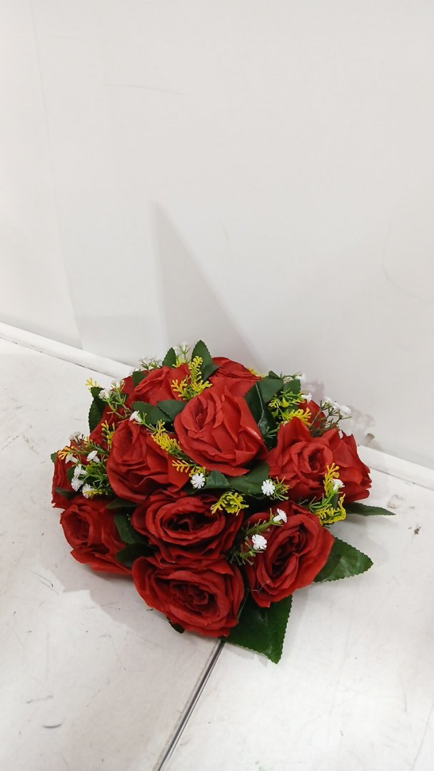 10pk faux rose flower wedding centerpieces - 8" - red/green