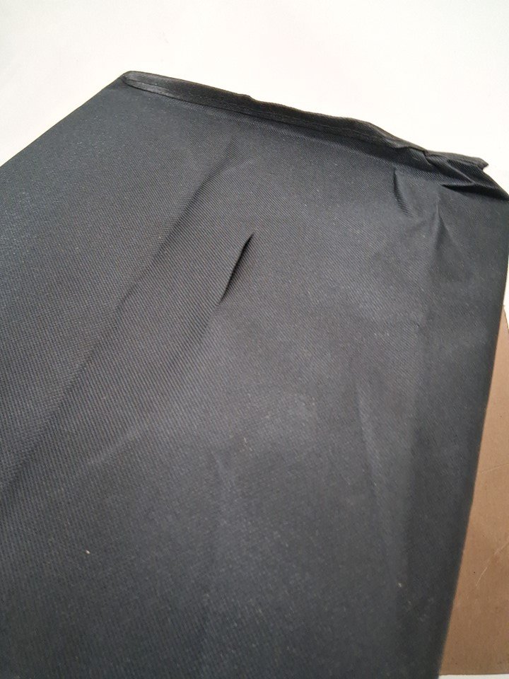 Assembly marks on various pieces Bag has a cut on the underside, but due to the fabric pad inside nothing will fall through it
