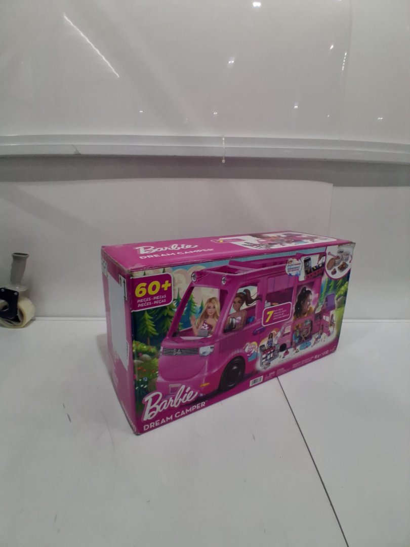60+PC Barbie Dream Camper Playset With Roof Tent and BBQ Grill (model: ‎HRJ78)