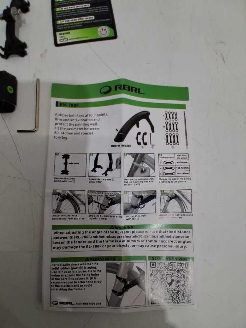 RBRL Bike Fender Mud Guards Set, universal fit, 24-29" (model:rl-780f/r)