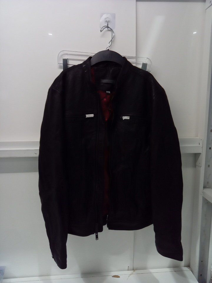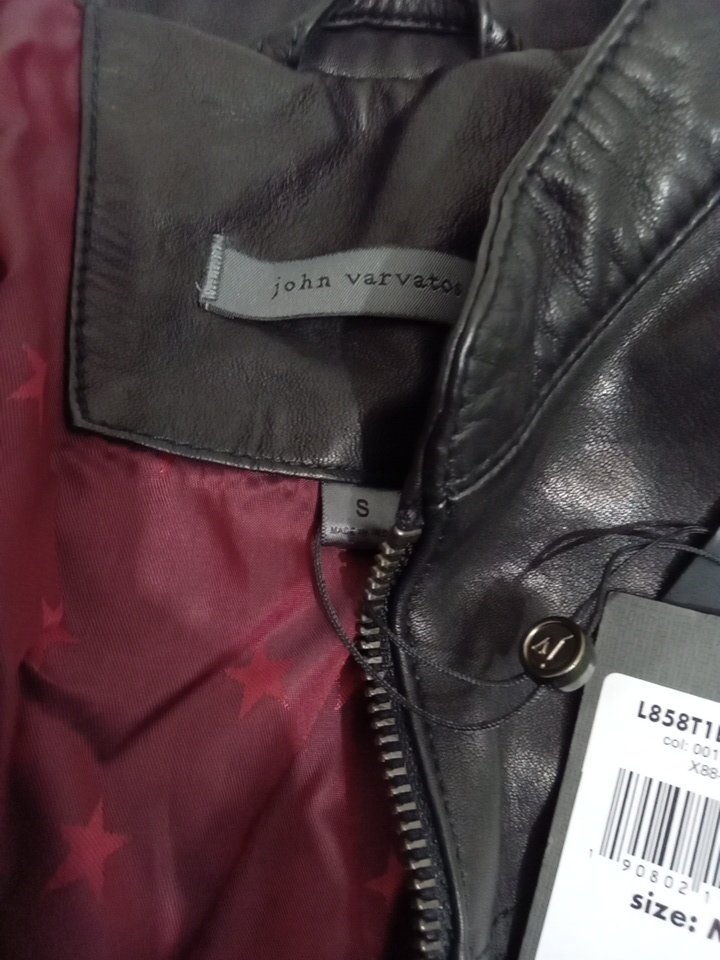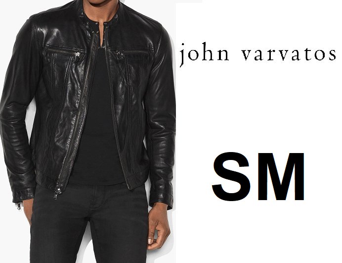 men's John Varvatos Brando Band Collar Leather Jacket- small - black