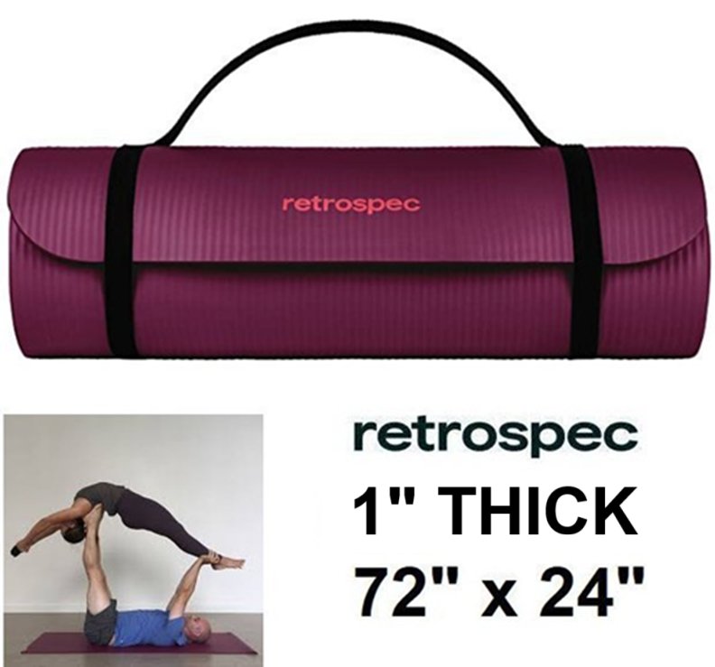 Retrospec solana non-slip Yoga Mat with carrying strap - 72"x 24" x 1" thick - BOYSENBERRY/PURPLE