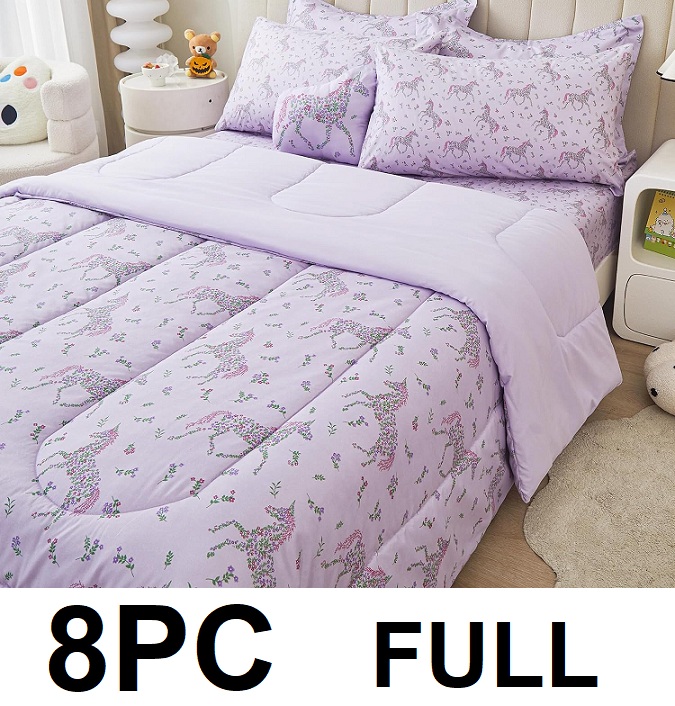 8PC Mooreeke Kid's Bedding Set - full size - Purple Floral Unicorn
