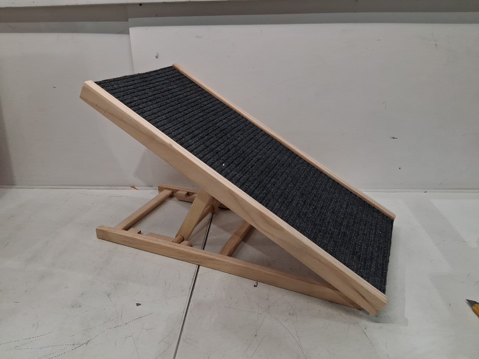 foldable carpeted pet ramp - 28"x13" 110lbs capacity - grey/natural wood