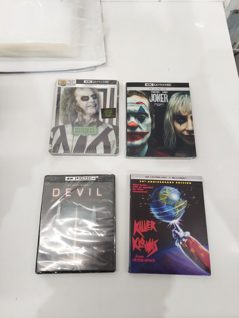 4pk BLU-RAY & 4K UHD SPOOKY/SCARY/THRILLER MOVIE BUNDLE: Beetlejuice Beetlejuice, KILLER KLOWNS FROM OUTER SPACE, JOKER: FOLIE A DEUX, & DEVIL
