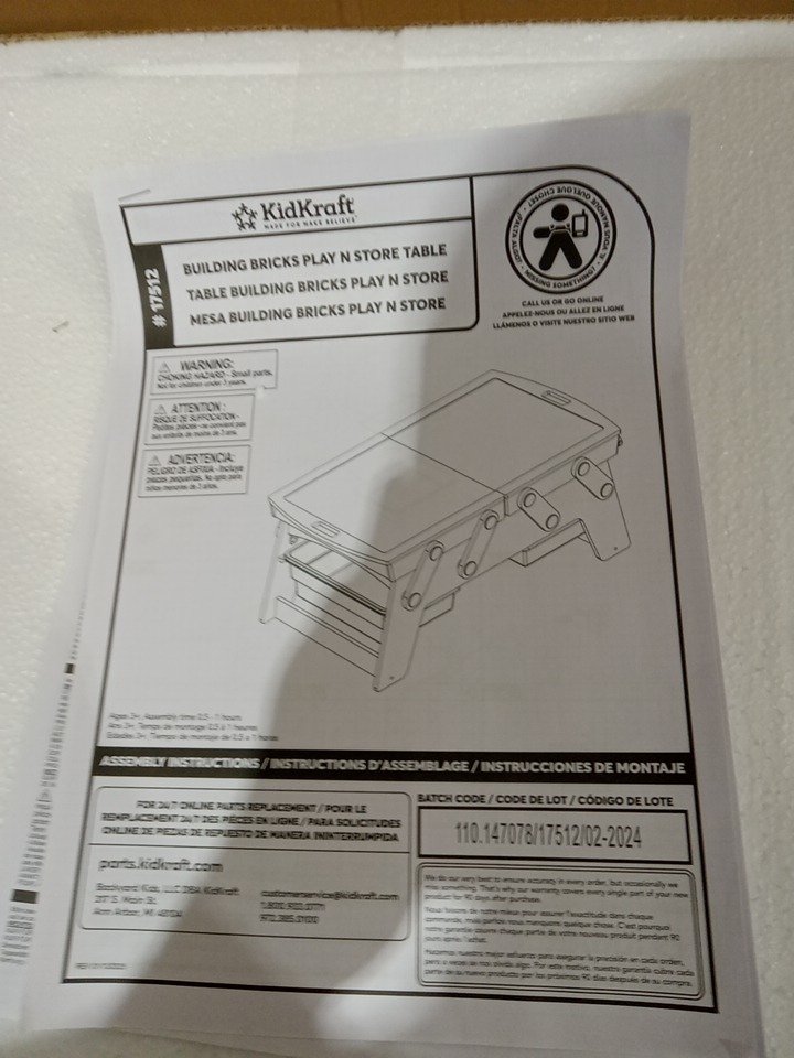 KidKraft Building Bricks Play N Store Table - 35.5" x 19" x 11" - natural/blue (Model: 17512)