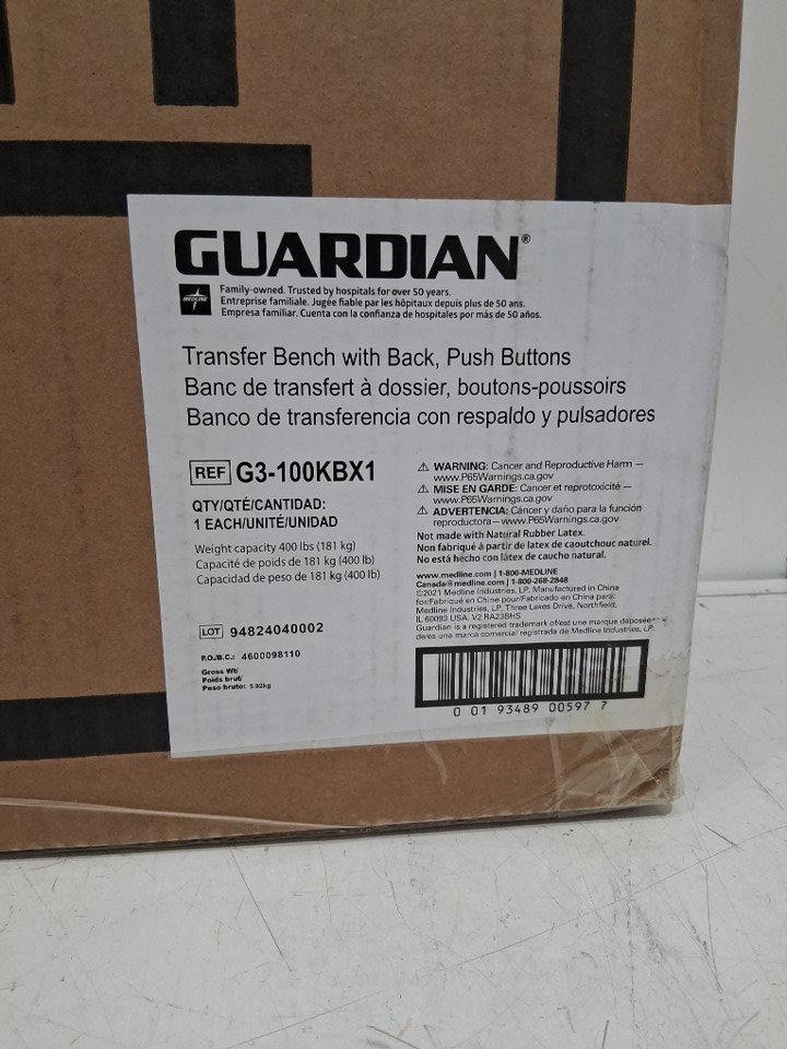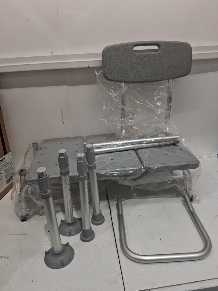 MEDLINE GUARDIAN bathtub TRANSFER BENCH WITH BACK support & suction feet- max 400lbs- GREY (MODEL: G3-100KBX1)