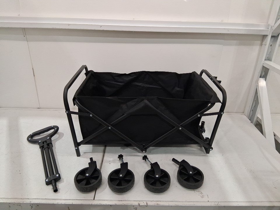 tge fabric insert for wagon has large tear along seam on one side (shown in photos) there is also some light scuffs around the handle and handle-to-wagon connection, and some debris in the wagon insert. As well as some light dirt on wheels from previous use