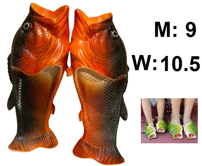 Adult's Unisex Rubber Fish Sandals - Men's 9 - Women's 10.5 - orange / black
