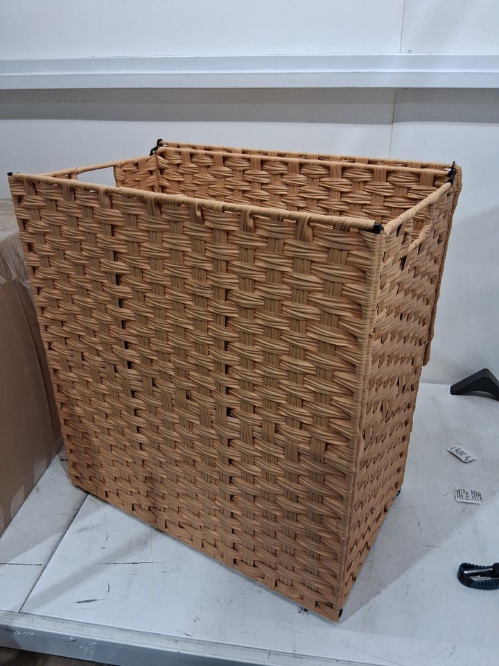 Greenstell Synthetic Rattan Laundry Hamper with Lid with 2 Removable Liner Bags - 110L - 99LBS CAP - LIGHT WOOD/WHITE (MODEL: LH005-V2-E)