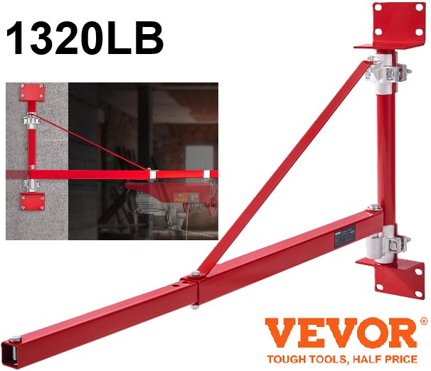 VEVOR Steel Electric Hoist 180° Swivel Scaffold Support Arm with Pole - 1320lb - red (model-DHZJ-300/600KG)