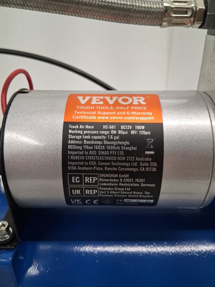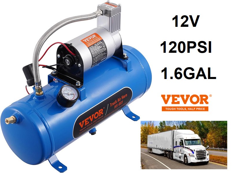 VEVOR on board Air Compressor system for train/truck - 12v - 1.6gal tank - 120psi - blue - (model: hs-661)