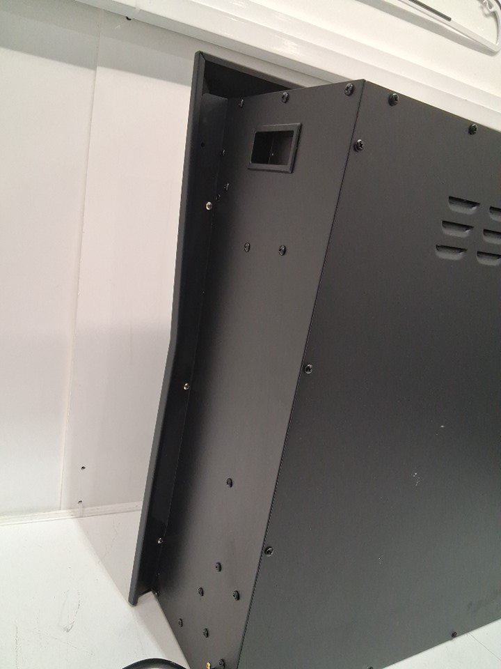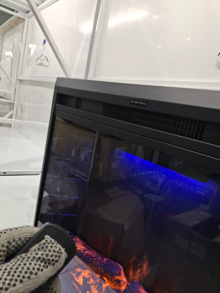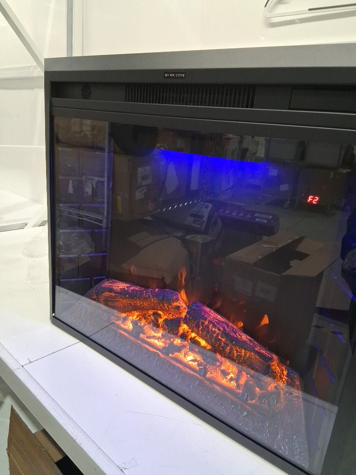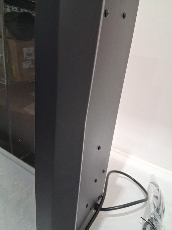 Tested for power, heat, color and sound. The front external metal panels are slightly bent, see photos for reference.