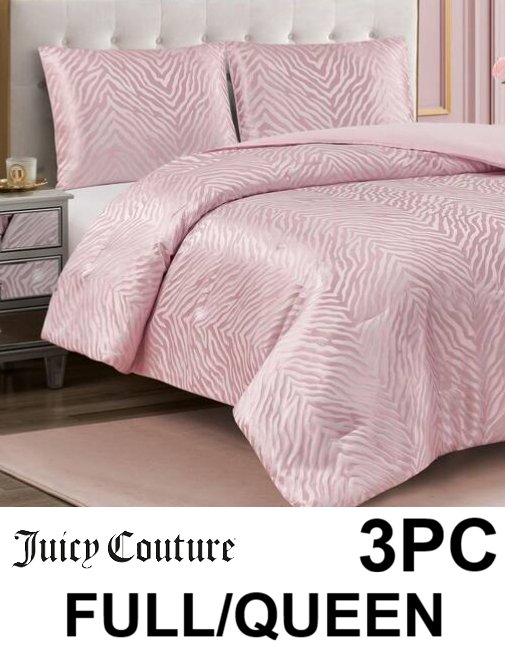3PC Juicy Couture Animal Print Microfiber Velour Comforter Set - Full/Queen - Pink/Zebra (Model: JYZ032898)