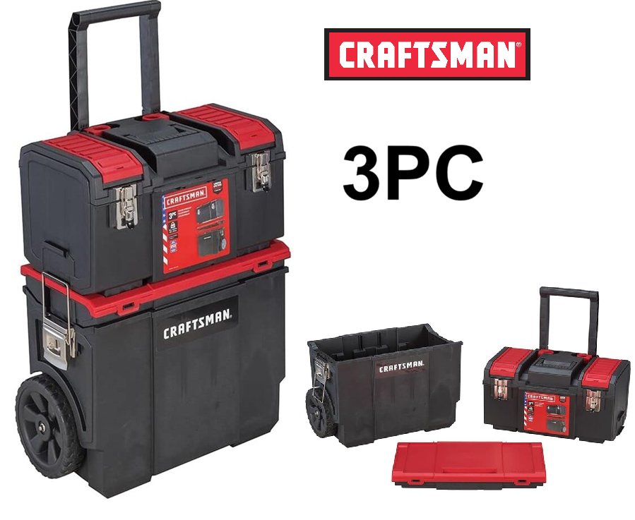 3pc CRAFTSMAN 3-in-1 Rolling Tool Box with Wheels - 19" - RED/BLACK (model: CMST18614)