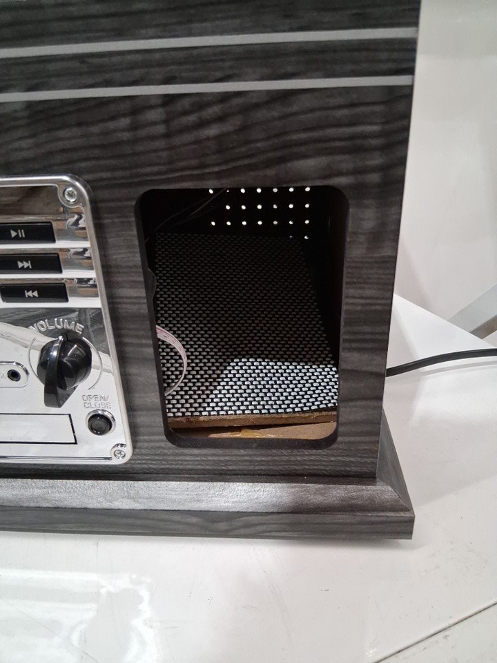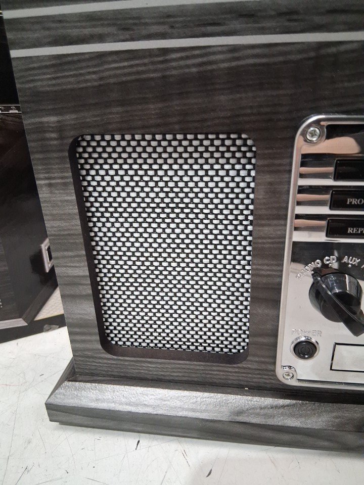 please note one of the wooden "speaker" pieces is detached. tested for basic power only. see photos.