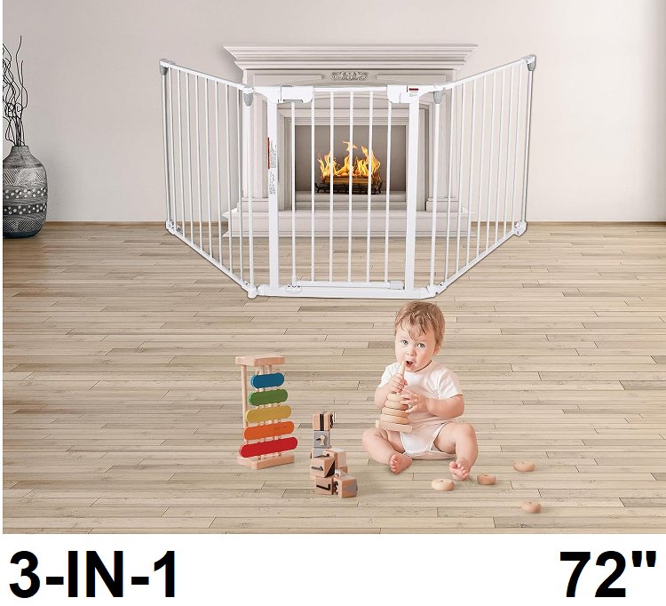 Patywaga 3-IN-1 baby or pet playpen/ safety gate extra wide 3 panels - 72" WIDTH - White (Model: XY017-3P)