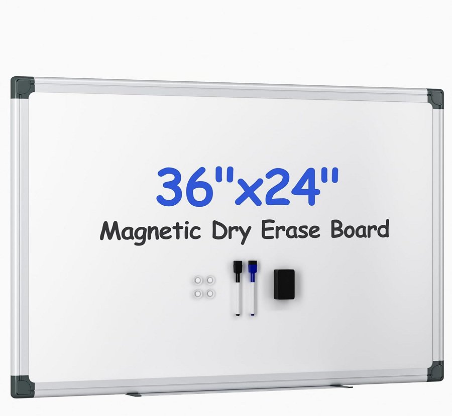 vusign magnetic dry erase board with markers - 36" x 24" - white