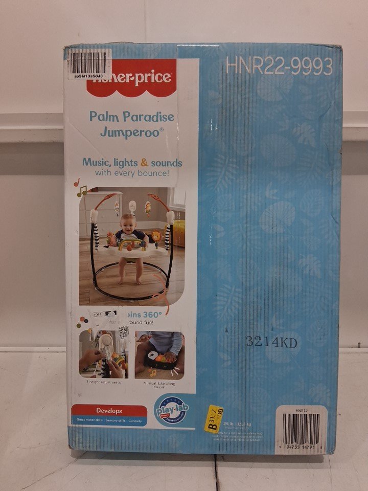 fisher-price palm paradise jumparoo baby activity center and interactive bouncer - 25lbs max - multi colour (model: hnr22-9993)