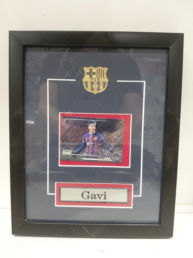 BARCELONA FC GAVI stadium club chrome CARD CUSTOM FRAMED - 9.5"X11.5" - BLACK