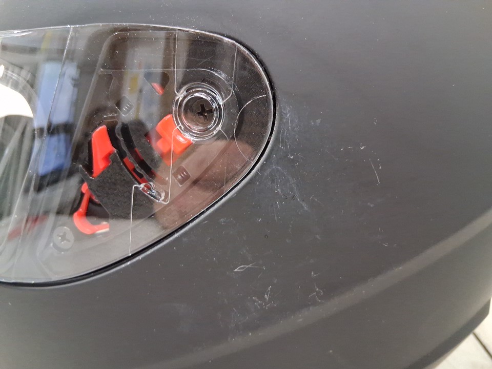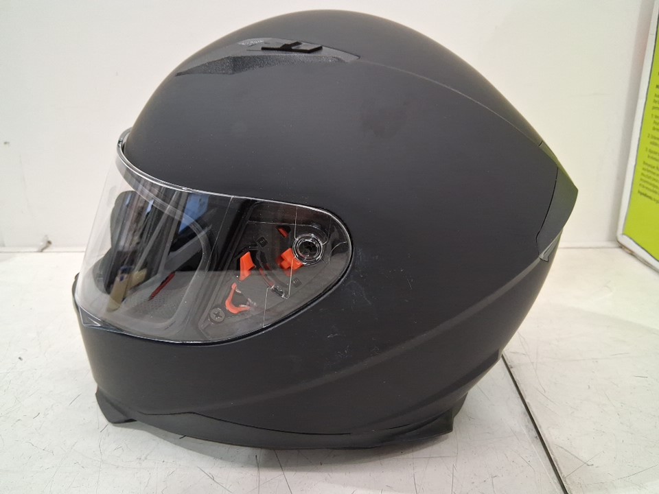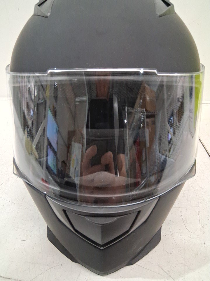 There are some scratches/scuff marks on the helmet from being shipped in too small of a box, but it otherwise appears new (see photos)