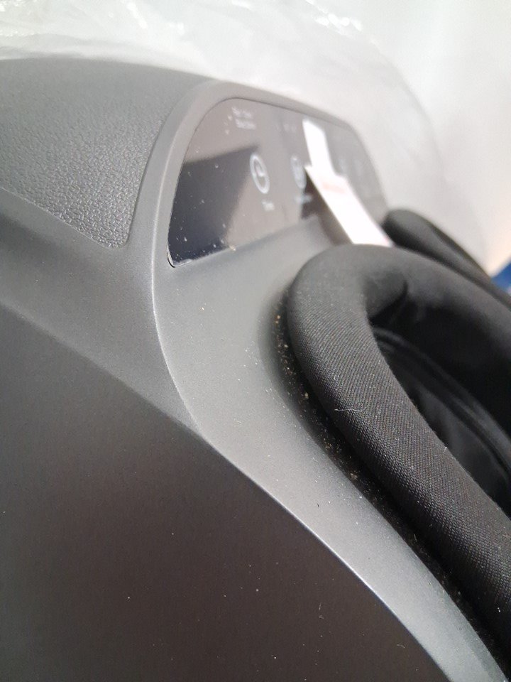 Sticker and film are still attached to screen, turning on won't show lights but confirmed power was working, and heat.