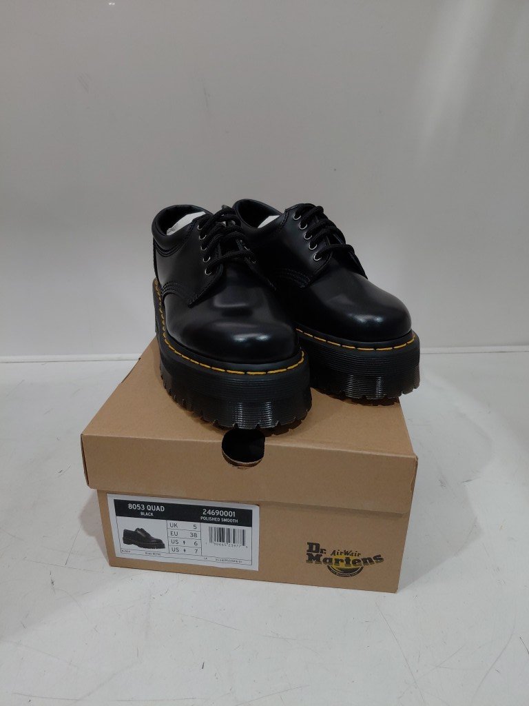 UNISEX DR. MARTENS quad leather platform casual shoes - mens:6 womens:7 - black (style: 24690001)