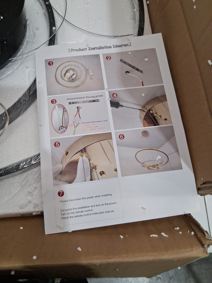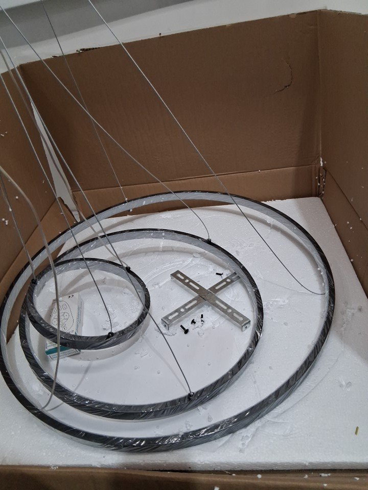 LIGHTINTHEBOX PENDANT LIGHT - 3-RING CHANDELIERand remote WITH SUSPENSION DESIGN FOR LIVING ROOM, DINING ROOM - BLACK