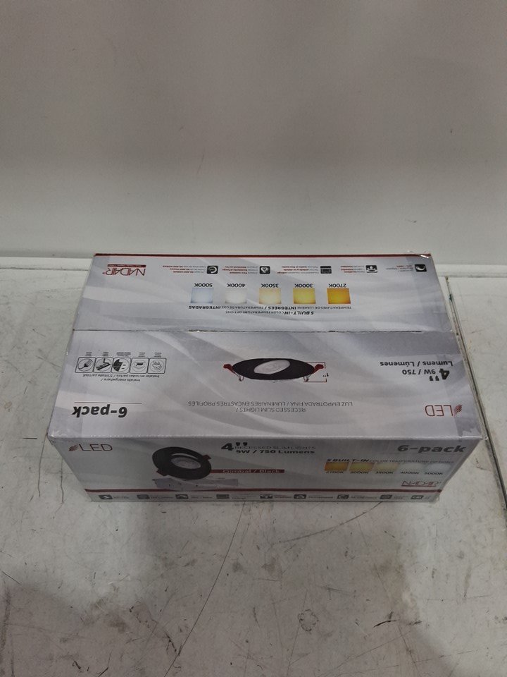 6PK NADAIR RECESSED LED SLIM POT LIGHTS - 4" - 4000k - 750LM (MODEL: sl4-750-6wh4kbk)