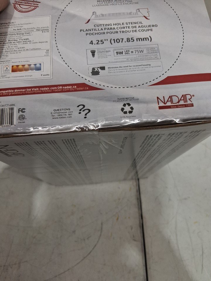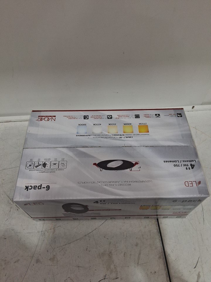 6PK NADAIR RECESSED LED SLIM POT LIGHTS - 4" - 4000k - 750LM (MODEL: sl4-750-6wh4kbk)