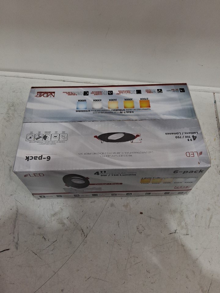6PK NADAIR RECESSED LED SLIM POT LIGHTS - 4" - 4000k - 750LM (MODEL: sl4-750-6wh4kbk)