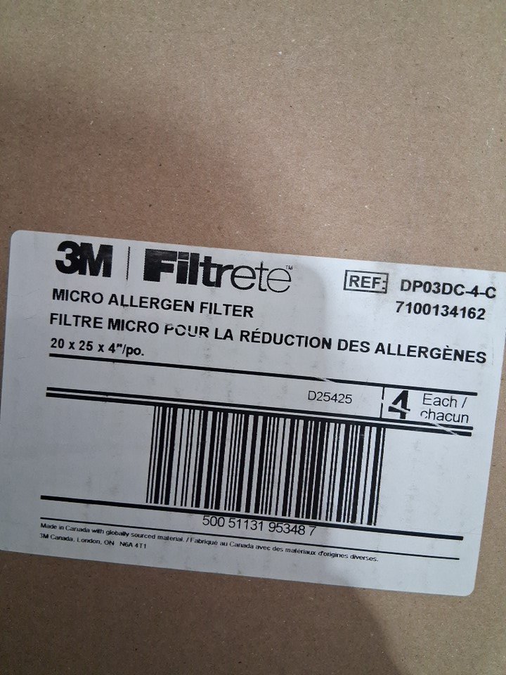 4pk m3 filtrete allergen reduction electrostatic pleated air filters - 20" x 25" x 4" (model: dp03dc-4-c)