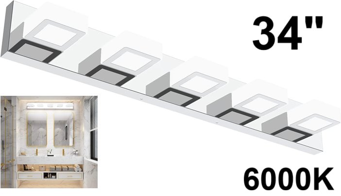 Ralbay Modern 5-light LED Vanity Light - 34" - 6000K - CHROME (model:8590-5t)