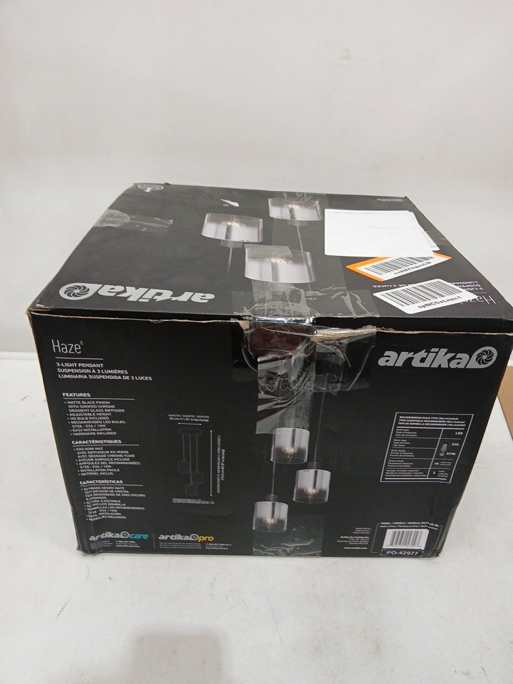 Artika Haze modern 3-light pendant fixture adjustable height - 60w per bulb - Black/smoke (Model: PDT3-hz-bl)