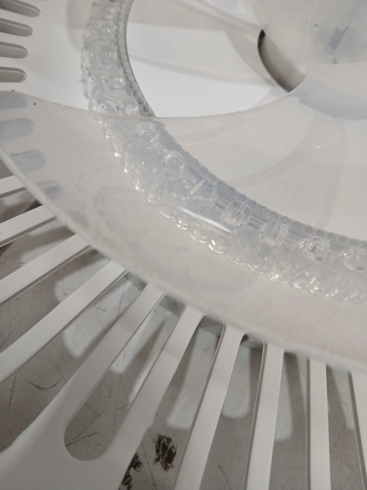 Has some dust on the blades from use.