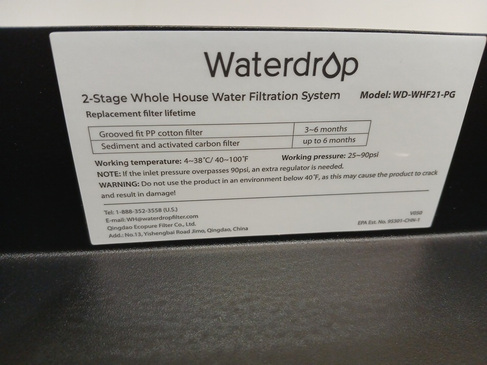 Waterdrop Whole Home Under Sink Water Purification System – Dual Carbon/Sediment Filters, 5-Stage Filtration, & High Flow Design -10"x4.5"- 36Qt (model: WD-WHF21-PG)