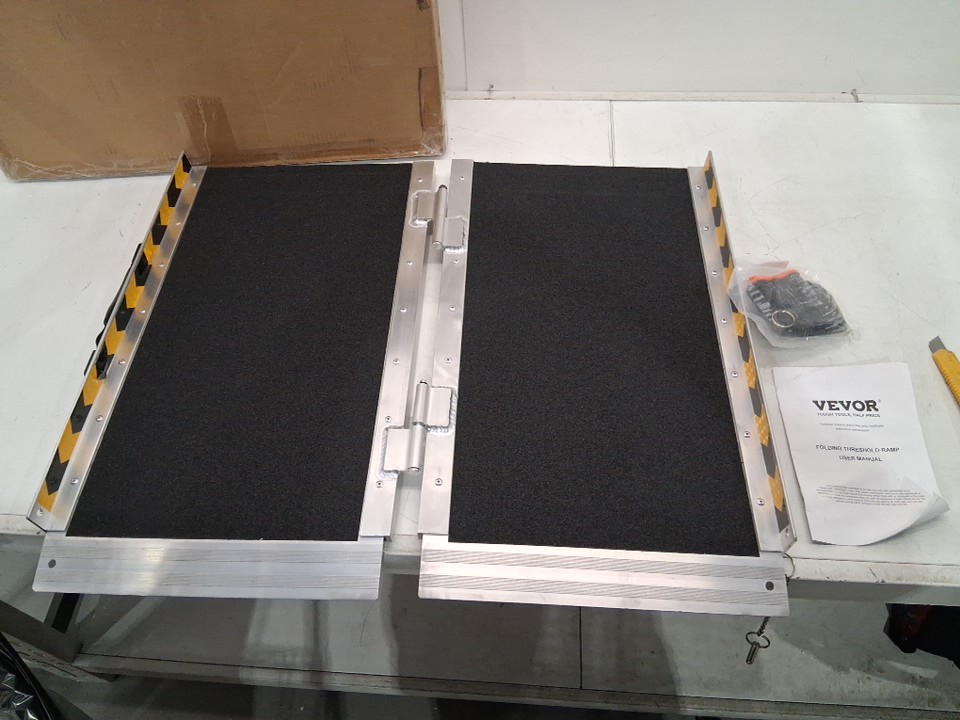 vevor portable folding threshold ramp for wheelchairs and mobility scooters 800lbs capacity - 29" x 24" x 2" - silver/black (model:1yf5qcv0)