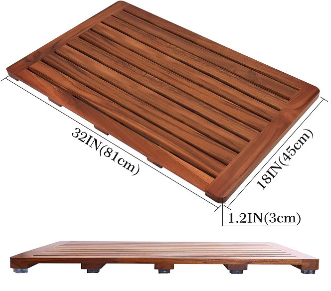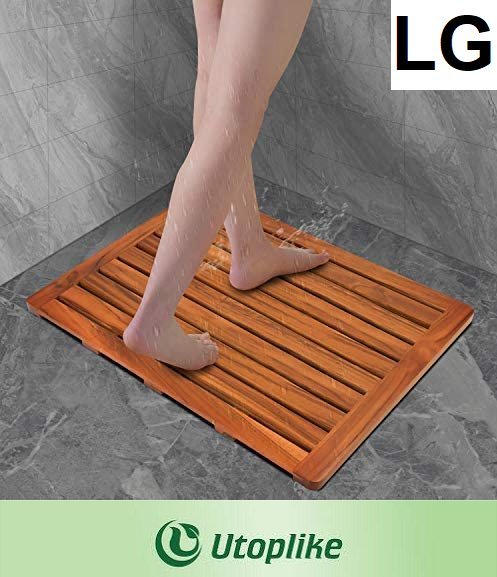 UTOPLIKE TEAK WOOD NON-SLIP BATH MAT - 32" x 18" x 1.2" - NATURAL TEAK