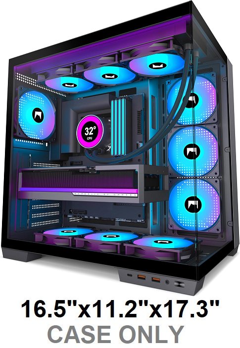 HYXN ATX Dual Cavity Mid-Tower PC Gaming Case, Pre-Installed with 7 PWM ARGB Fans - 16.5"x11.2"x17.3" - black (model:h1)