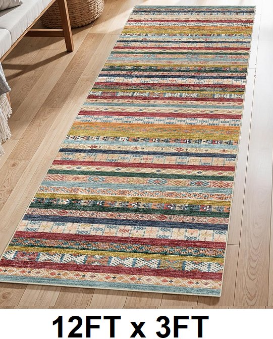 Runner Rug Non Slip Hallway washable - 12FT x 3FT - assorted colours